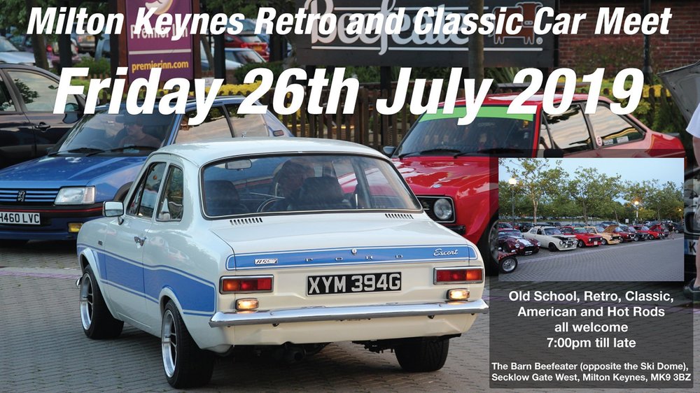 Milton Keynes Retro and Classic Car Meet Next Friday 26th July Meet: Old School, Retro, Classic, Hot Rod and American cars Time: 7pm till late Location:The Barn Beefeater (opposite the Ski Dome), Secklow Gate West, Milton Keynes, MK9 3BZ. Great location - massive car park, pub garden, restaurant. McDonalds, Kentucky, Nandos, late night shops and leisure all within walking distance. All OSF members, classic car enthusiasts and clubs are welcome.. All types of cars in a similar age group of 25-80 years including Hot Rods, Classic, Race, Rallye, Offroaders, American are welcome.. Leave your computer for a few hours. Get away from the dreaded soaps! Come along for a chat. Show off your pride and joy! Take some photos. Swap, buy or sell car parts. Arrange meets and club stands for shows. Dine out. Get some advice hints and tips. Have a drink and tell us your stories. Vote for your favourite car of the night. Enjoy your car. People have travel to this meet from, Luton, Oxford, Bedford, Northampton, Rushden, Coventry, Hemel Hempstead, Buckingham, St Albans, Stevenage on a regular basis Meet new friends. We have been meeting up for a good 10 years now.. It doesn't matter what you drive if you like old cars then we have got something in common. See you there
