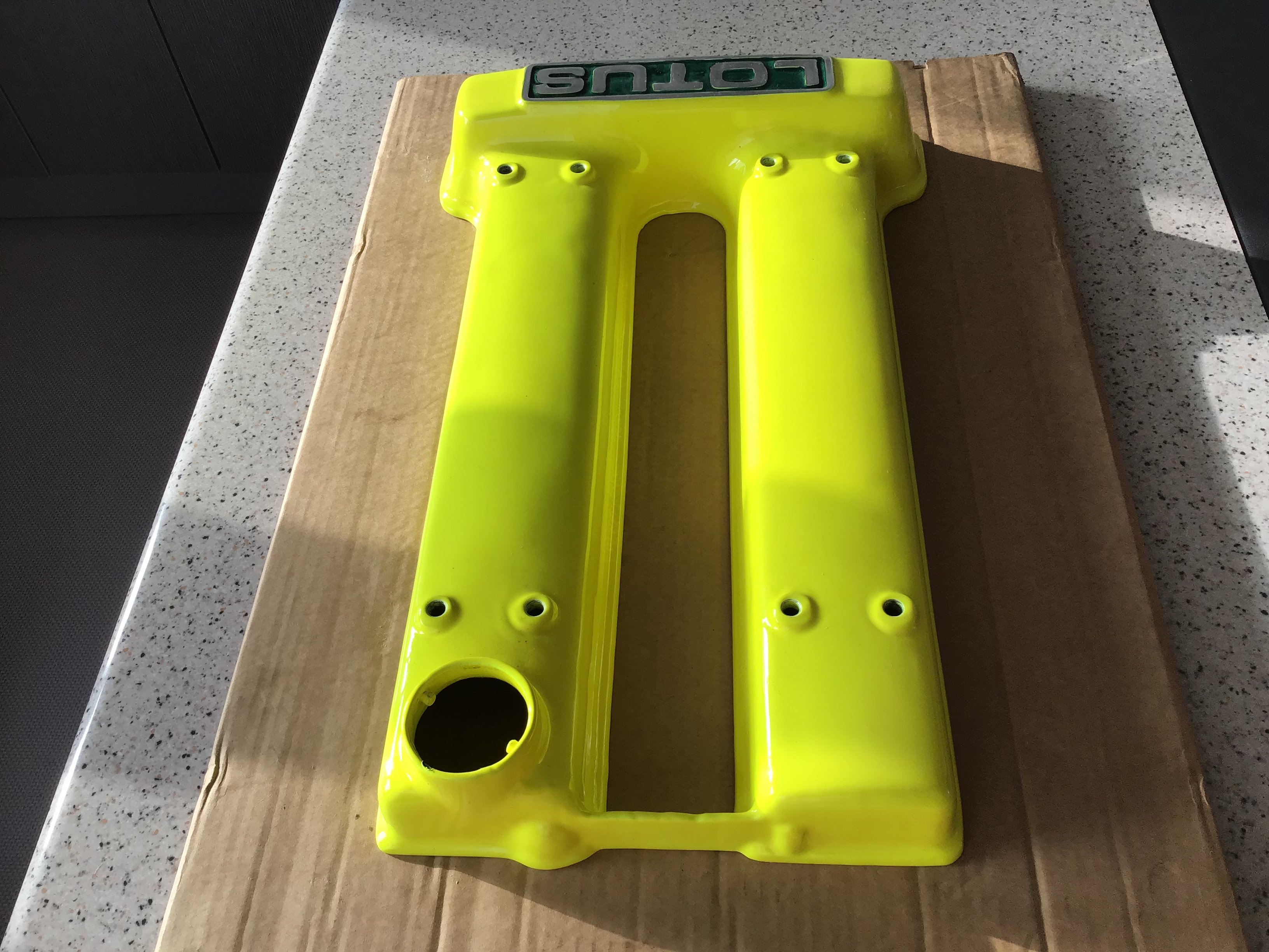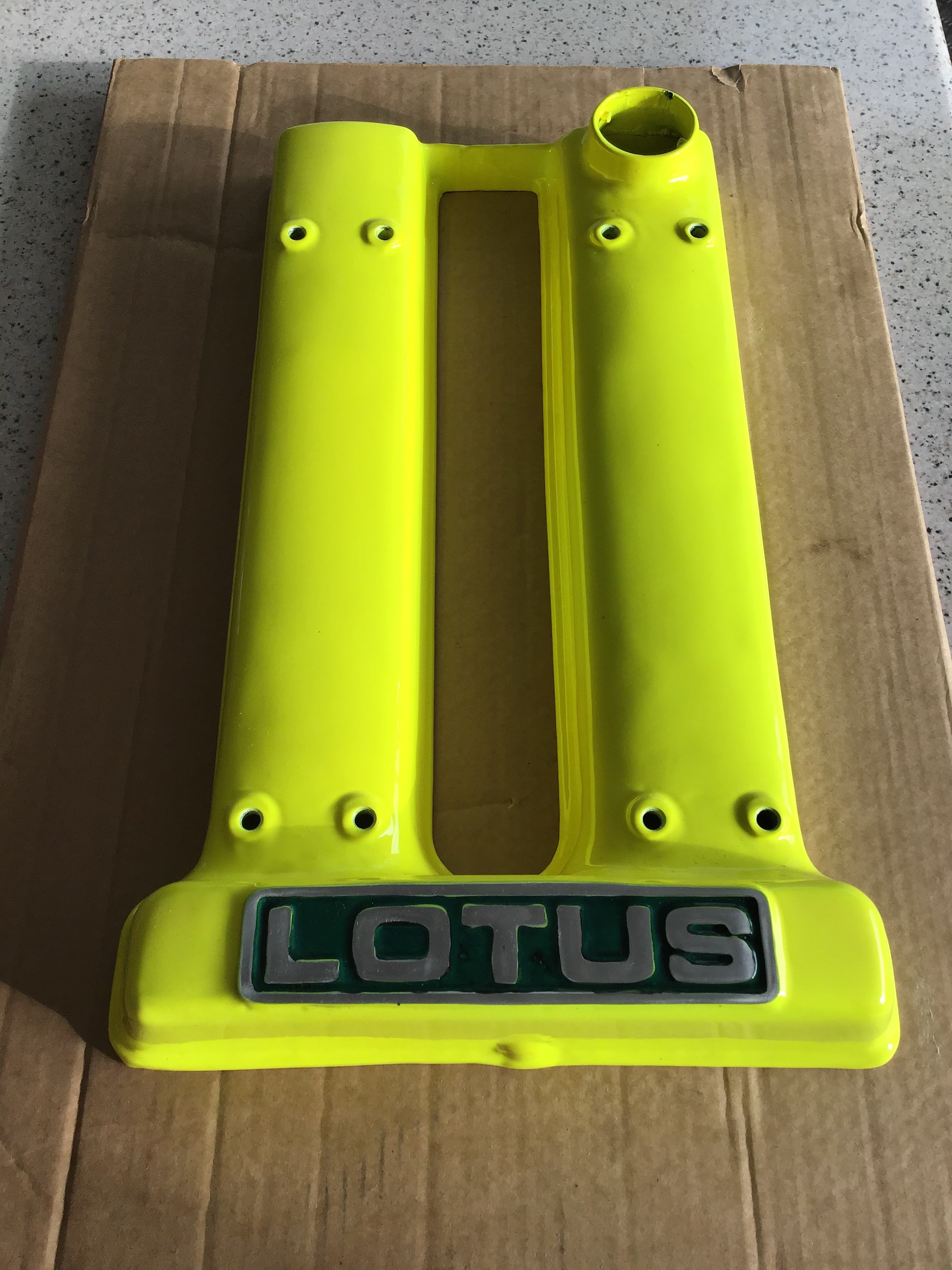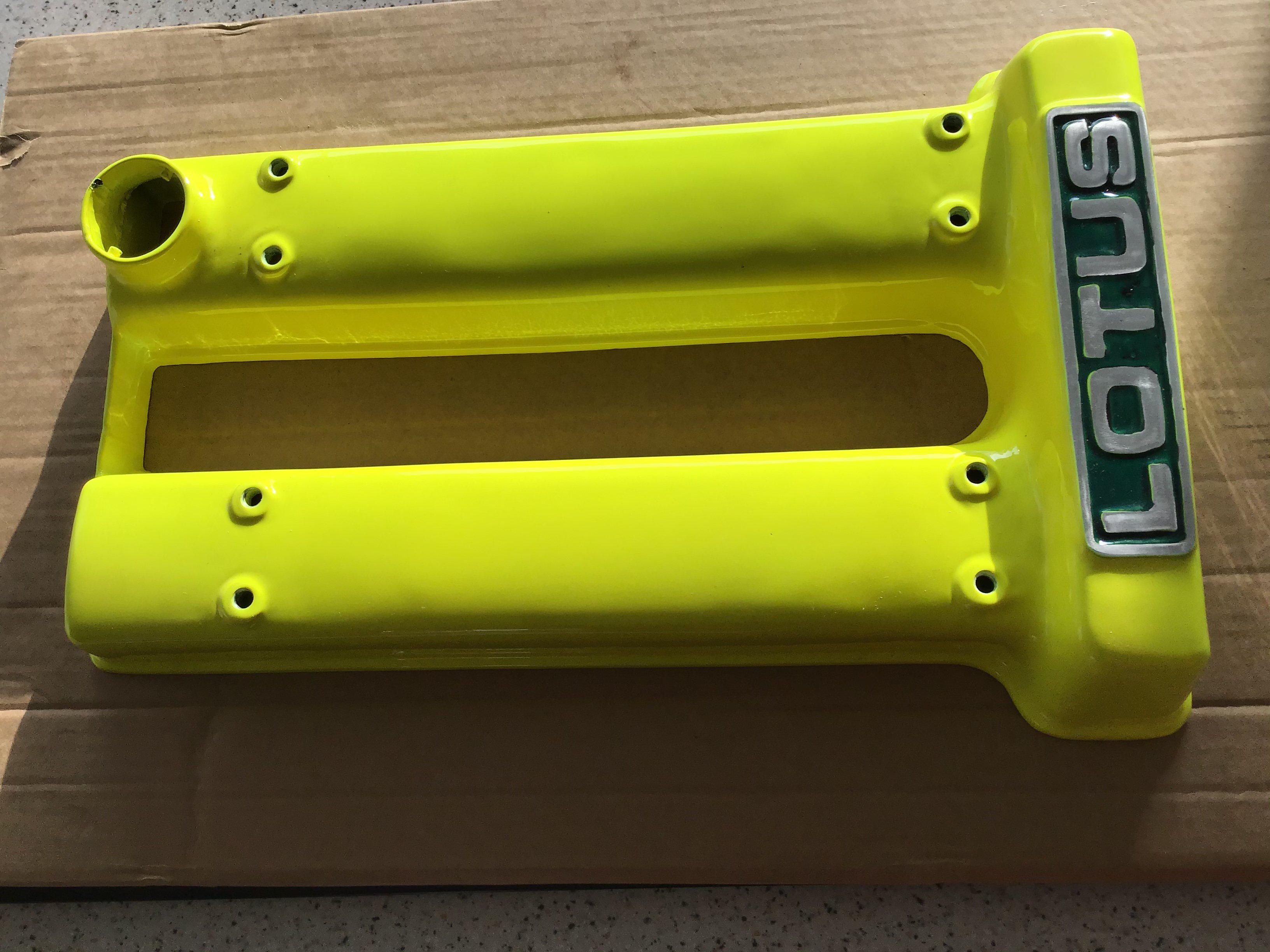 JJ DIKKE Posted November 7, 2019 Report Posted November 7, 2019 Cam Cover - Lotus Twin Cam Time to sell one of my cam covers for the Lotus twin cam. Recently cleaned and powder coated. As you will see by the photographs the letters have not picked out well, however, the purchaser will obviously want to make the letters a little better, a nice small winter job to take you away from the television and the turkey. Sure you will agree that this will brighten up your twin cam. Suitable for Elan, Plus 2, Escort, Cortina or any twin cam powered kit car. Would also serve as a fabulous Christmas present to hang on your garage or lounge wall. You are not likely to see another in this colour at the show next year. £235.00 Collection in person with cash upon collection please.