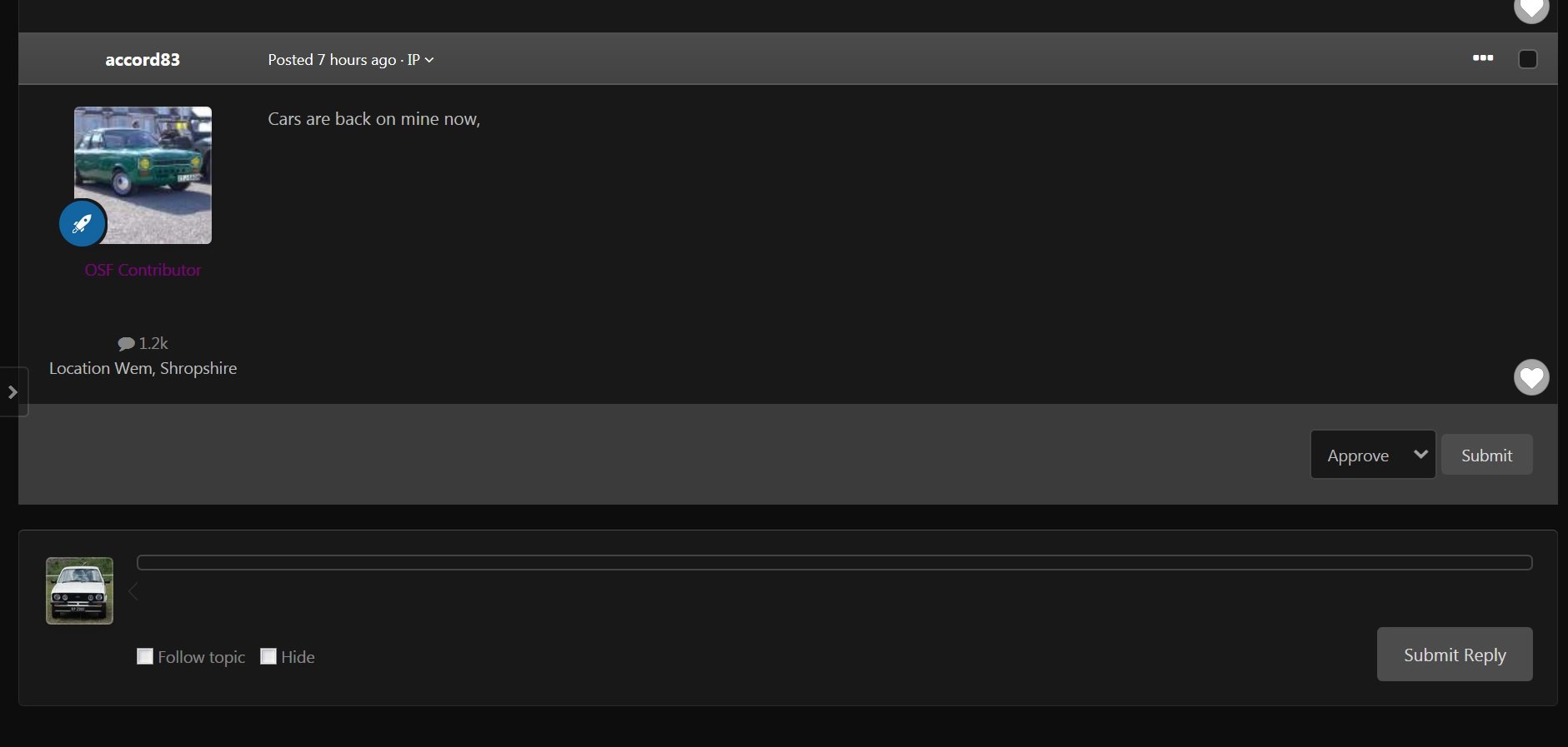 Moderator Rally Pack 2000 Posted March 12, 2023 Author Moderator Report Posted March 12, 2023 On 11/03/2023 at 09:00, Vista said: Try again James, I have just updated the theme too No its still the same sorry, I had to start up another browser just to reply to you. I cant see the cars up top any longer either. I can work around it like I have here to reply just wont be able to replies as often if im over on another browser most of he time doing other things.